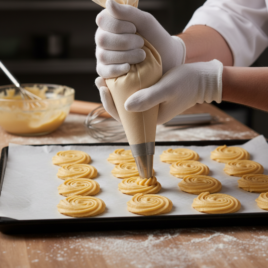 - Prepare for Piping Spoon the dough into a piping bag fitted with a large star nozzle (e.g., Wilton 1M).