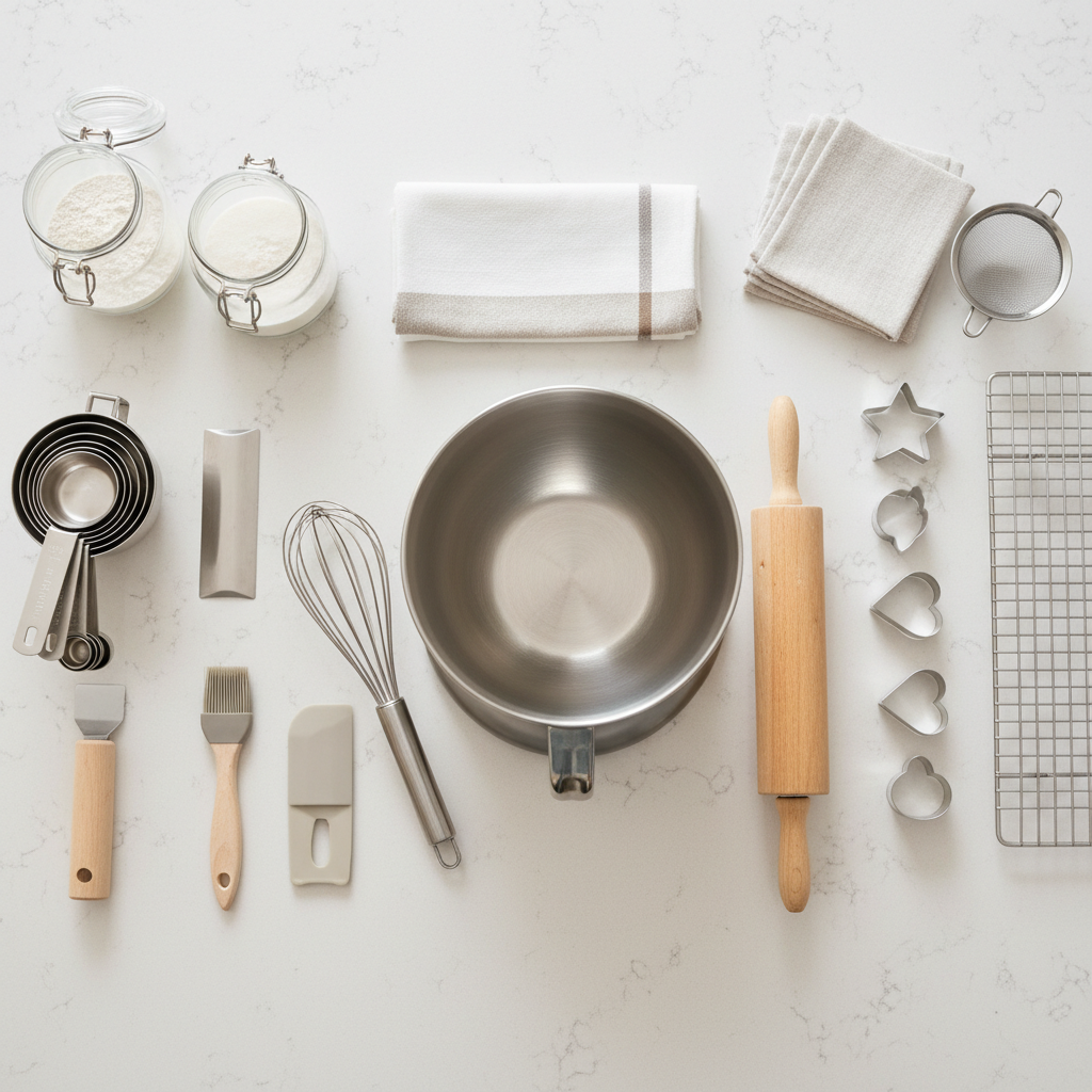 • Measuring Cups and Spoons: Accuracy is key in baking!