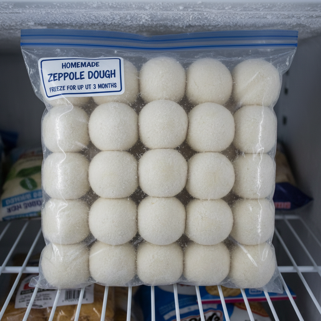 - Freezing Cooked Zeppole Allow plain, undusted zeppole to cool completely. Arrange them in a single layer on a baking sheet and freeze until solid. Once frozen, transfer them to a freezer-safe bag or container. They can be stored for up to 1 month. Reheat from frozen in a preheated oven or air fryer until warmed and crispy.